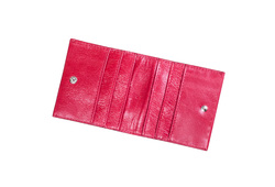 4 отделения для карт, 2 отделения под купюры. Застегивается на кнопку. Встроена защита от бесконтактного считывания карт.